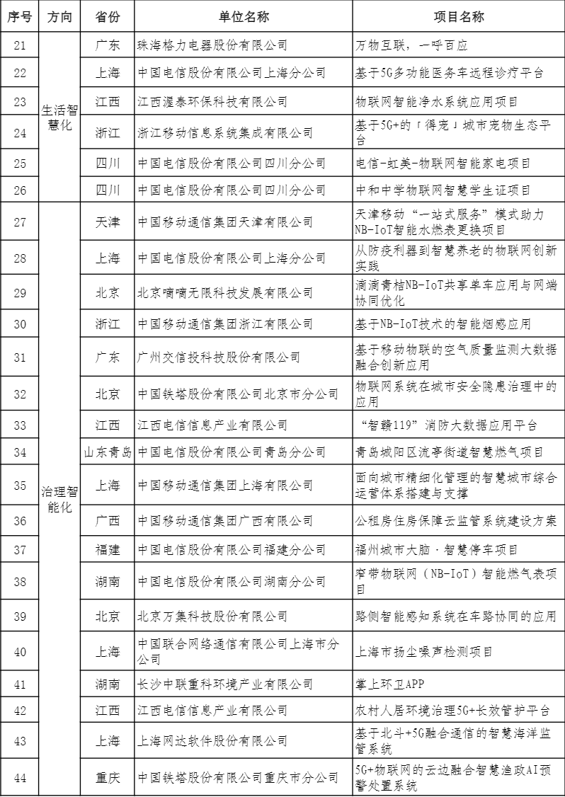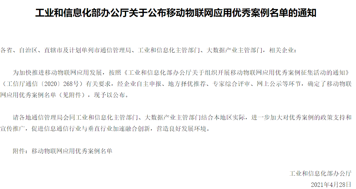 日前,工业和信息化部办公厅公布了44项移动物联网应用优秀案例入选名单。